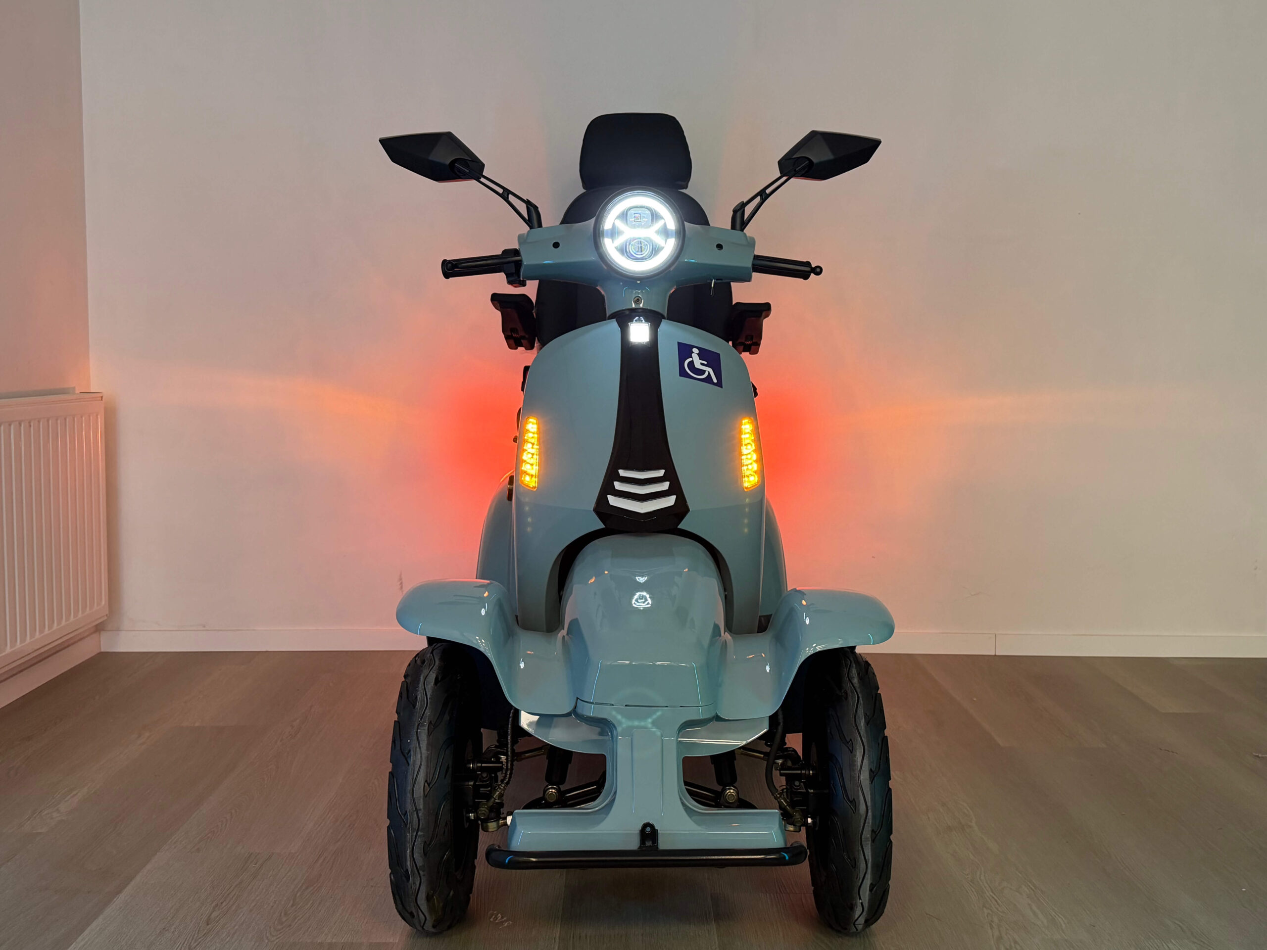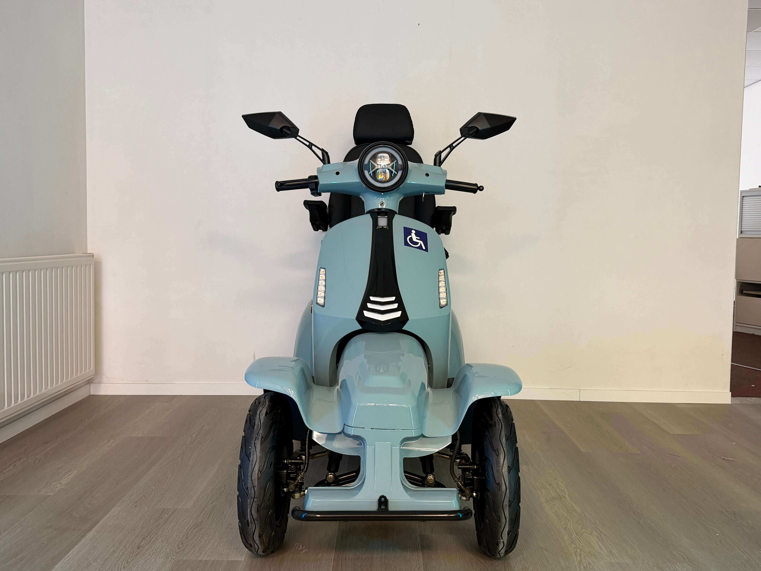 Het ontwerp van de On Four is geïnspireerd op klassieke Vespa scooters en gecombineerd met moderne technologie. Het resultaat is een stijlvolle scootmobiel die niet alleen functioneel is, maar er ook goed uitziet. Geen standaard hulpmiddel, maar een voertuig waar u graag op rijdt.